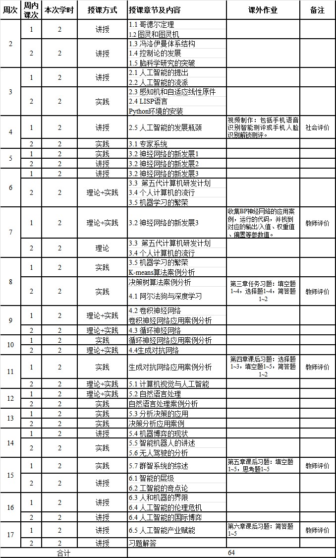 本课程从人工智能与大数据历史发展的角度,使学生正确认识和理解人工智能领域、大数据领域基本概念与术语,如人工智能方法与技术(感知智能、认知智能、行为智能)、大数据(Volume、Velocity、Variety)。全面反映了人工智能与大数据发展脉络以及当前领域的发展现状、主流思想和技术。利用人工智能与大数据领域知识交叉的特点,培养学生跨学科的思维方式,严谨的科研态度以及创新能力。激发学生的内生动力,为后续课程、创新创业、技能竞赛奠定基础。