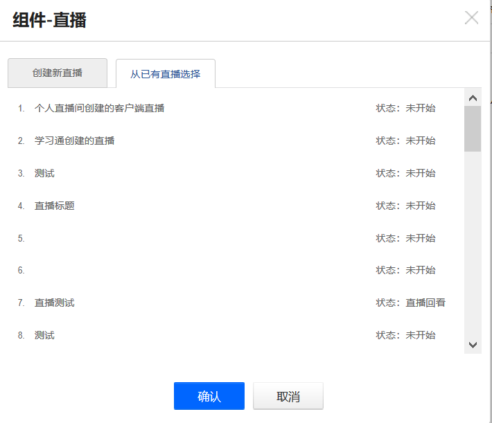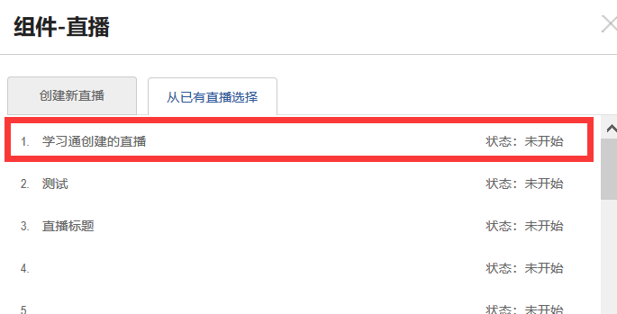 路径1:手机学习通APP活动控件“直播”创建的直播直接从“从已有直播选择”插入;