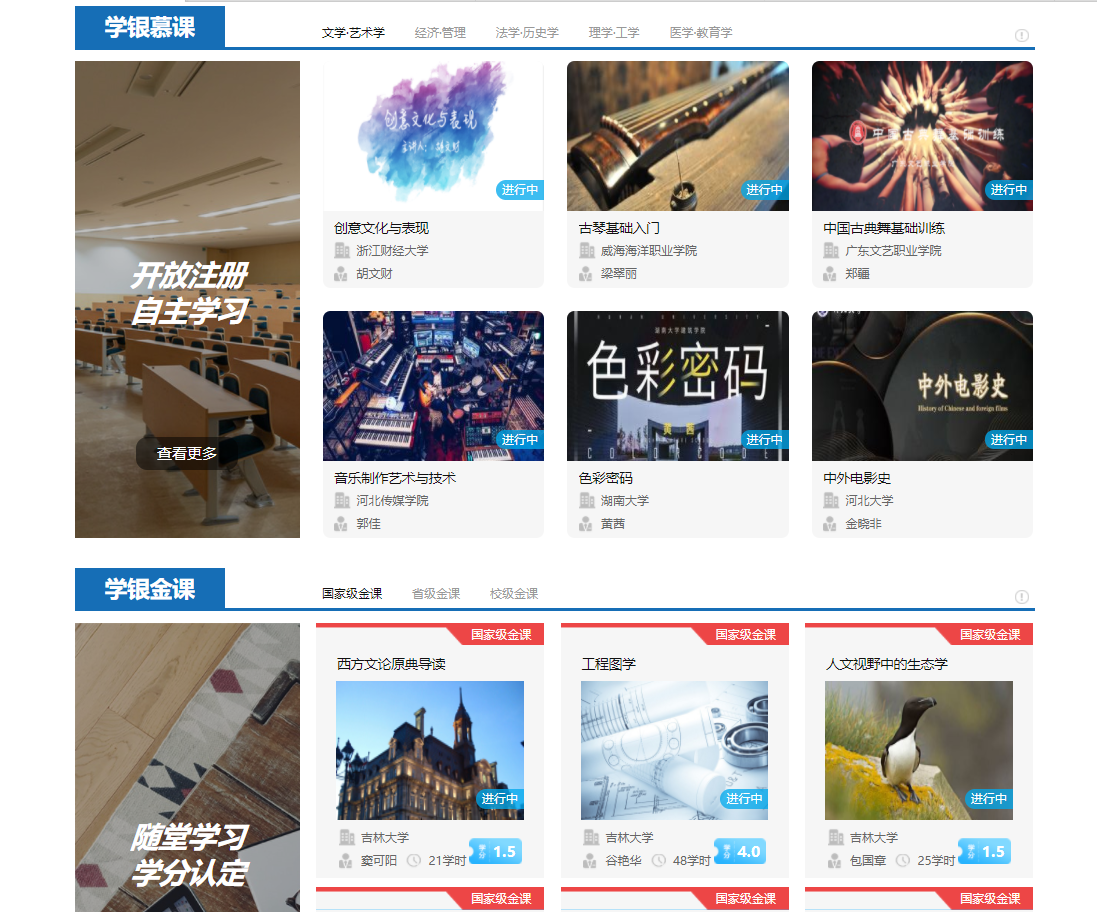 金课显示在学银门户“学银金课”,包括国家级金课、省级金课和校级金课,老师们可申请在“学银金课”推荐课程进行推广。
