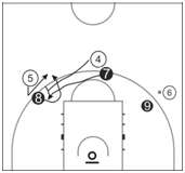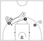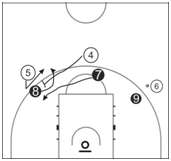 易犯错误:“关门”时靠拢不够,被对手挤过了防守配合;动作慢,造成了阻挡犯规。
